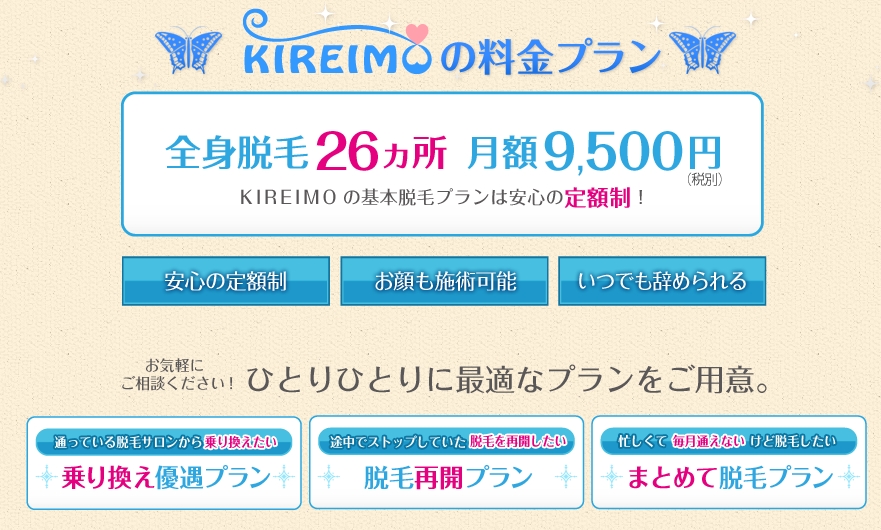 脱毛エステサロンKIREIMO(キレイモ)の気になる料金は?